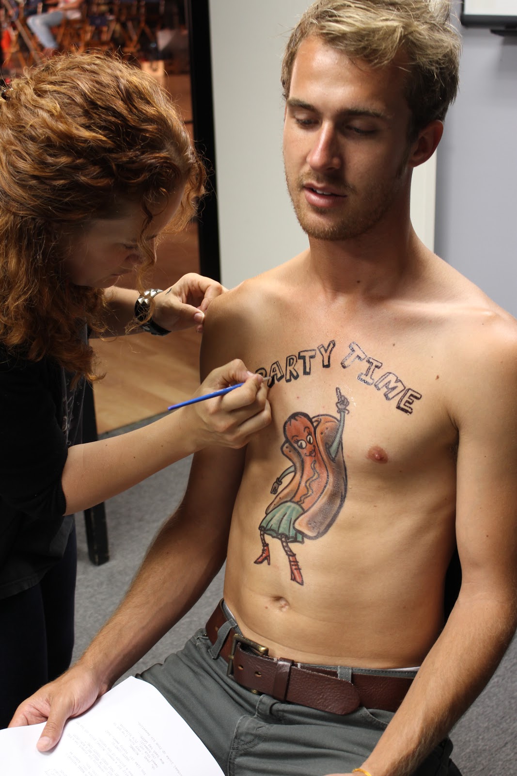 Charles Wills and I burning the midnight oil while fill the body with guts and stuff thanks to all of our interns from Make-up Designery we were able to do a butter batch and get Him closed up.