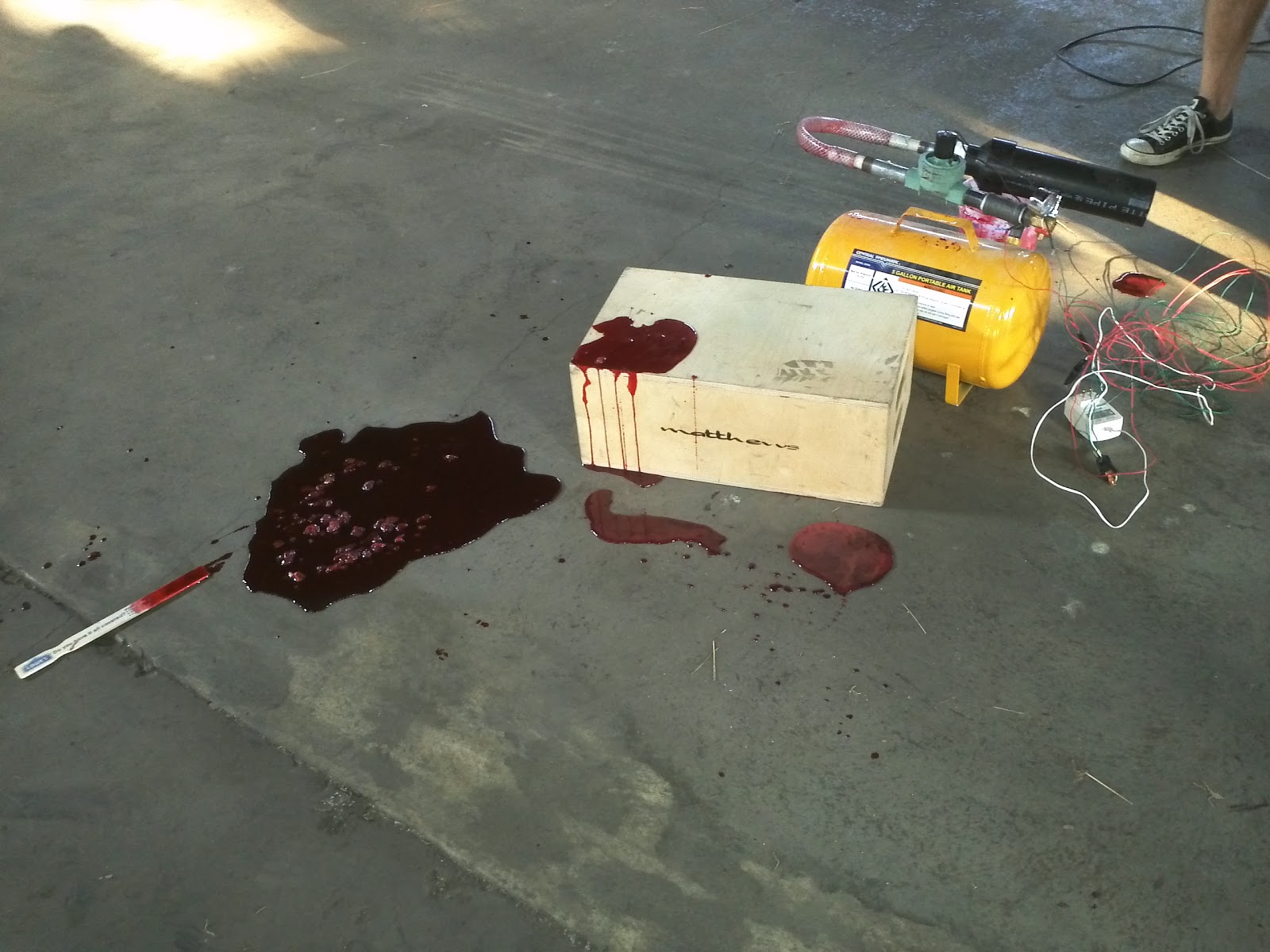 We got to have a little fun with the blood canon yesterday. Not sure if the actor or the apple box suffered more.