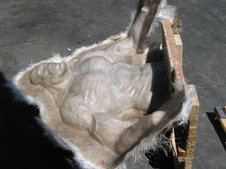 Our first pull out of the mold worked (not that we had a choice) Rachael Kooyman and Mariana Olesijuk Seam the beast. the we attached the hands and proceed to paint the silicone.