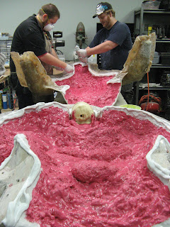 Charles Wills and I burning the midnight oil while fill the body with guts and stuff thanks to all of our interns from Make-up Designery we were able to do a butter batch and get Him closed up.